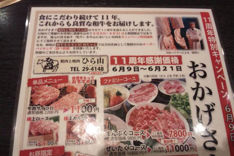 週末に、久しぶりに「ひら山」さんへ行ってきました