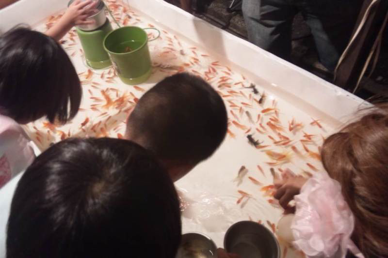 由緒あるお祭りですが、子供は金魚すくいに夢中