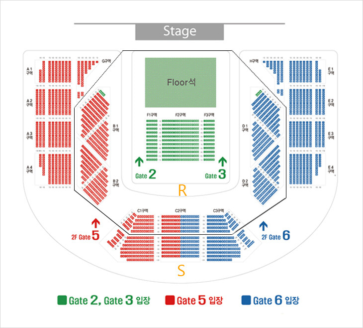 * 배치도는 회원분들에게 좌석을 안내해 드리기 위해 임의로 제작한 것입니다. (R,S구분)