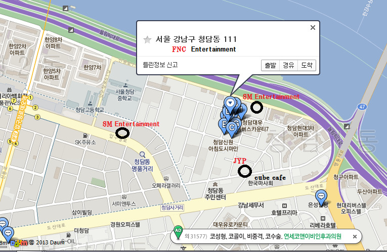 FNCの新事務所はまだ住所がわからなかったので、SMエンターティンメントの
