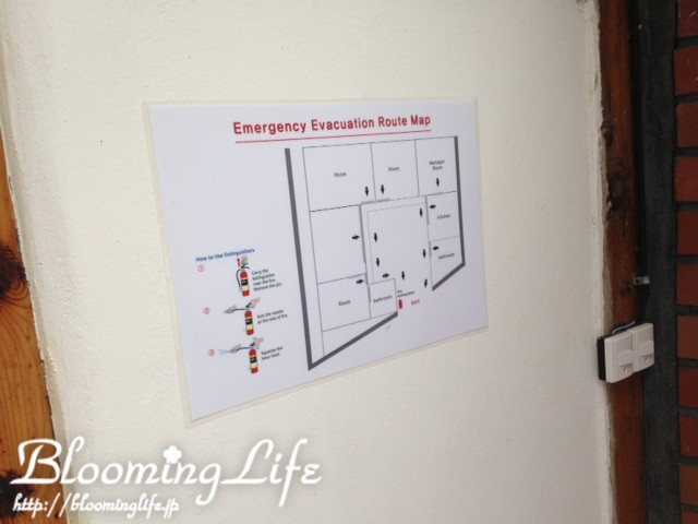 そして、宿泊施設としての義務、避難経路もきっちり掲示されていました。