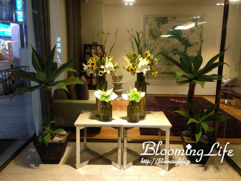 ひとつめの自動ドアを入ると、華やかなお花が。