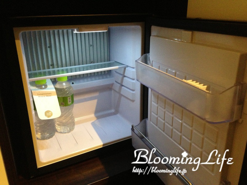 冷蔵庫の中には無料のお水が2本入ってます。
