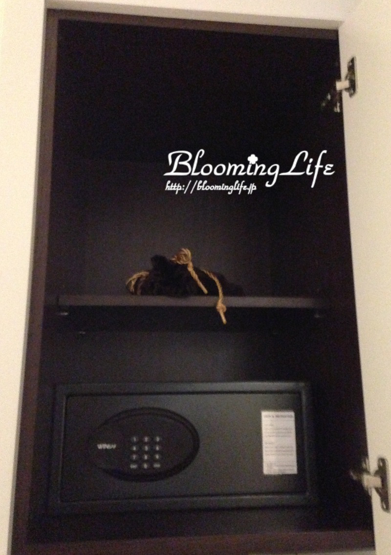 バスルームの入り口の横には、扉を開けると金庫とドライヤーが。
