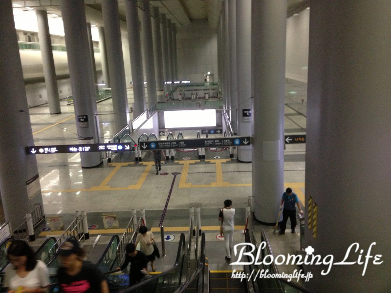 ここで、ソウル駅へは右側、仁川空港へはこの下、と書いてありますね。