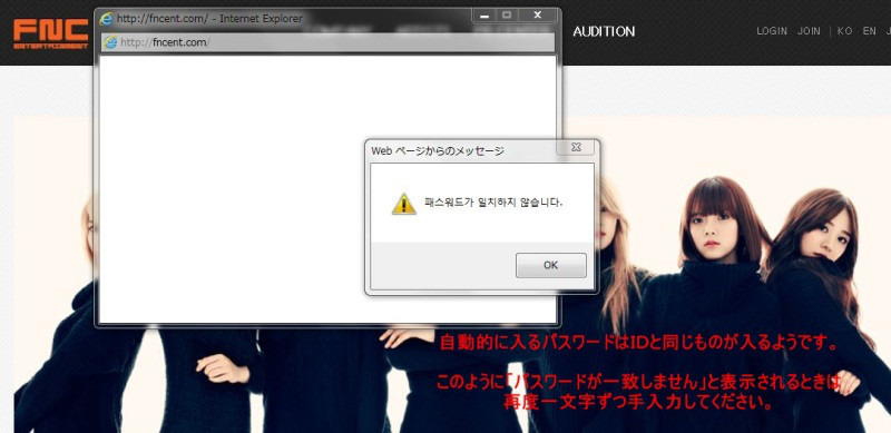 ログインできるようになったら韓国FNCエンターティンメントにログインし、