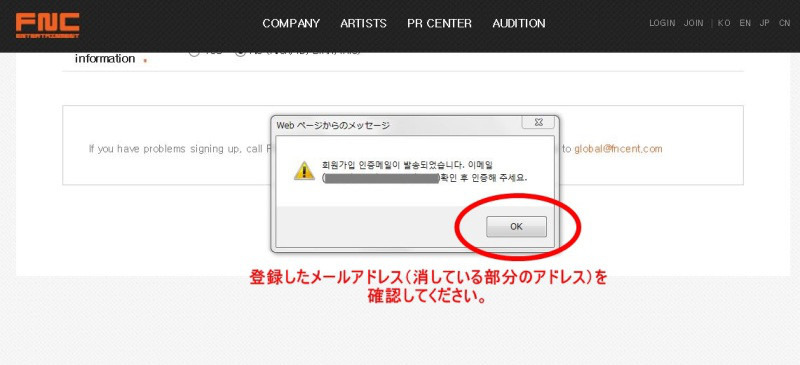 韓国FNCエンターティンメントに会員登録する。