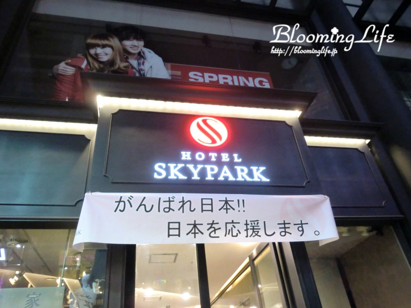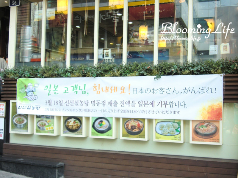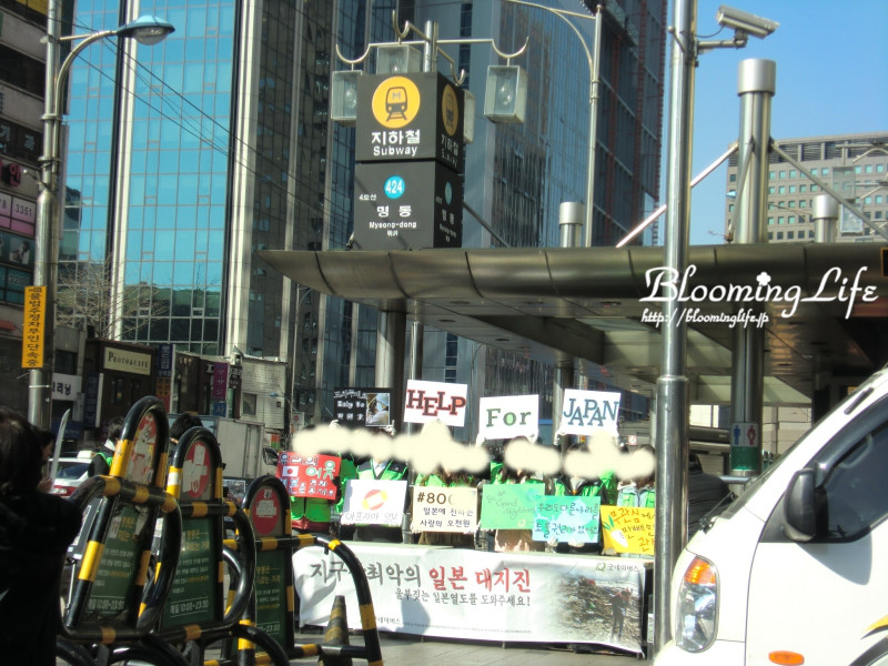 明洞では、日本を応援してくれる韓国の方の気持ちがこもった垂れ幕があり、