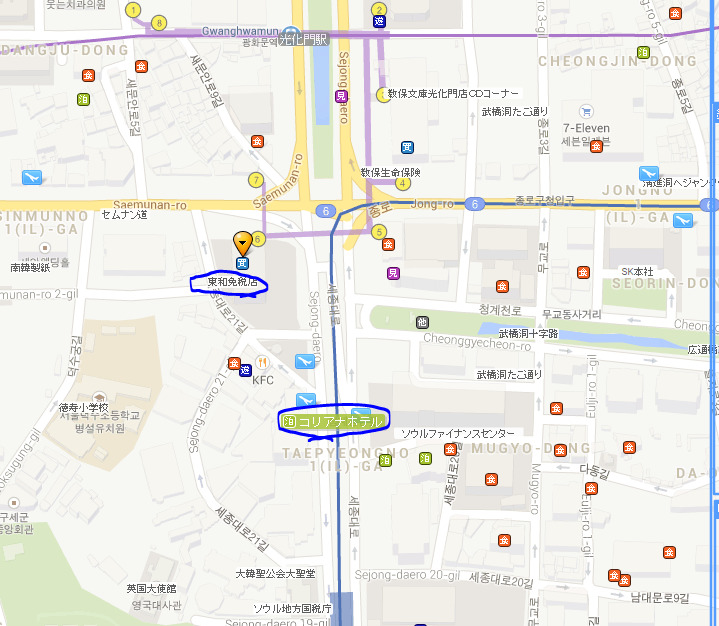 東和免税店からコリアナホテルまでは近いので徒歩で移動します。