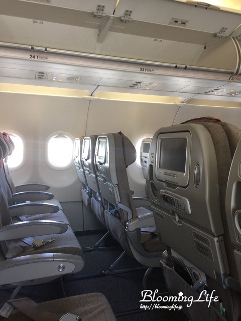 エコノミークラスでもシートに余裕がありますし、