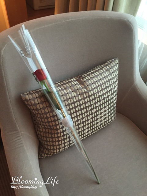 バラの花一輪、旅行中にお部屋にあるとなんとなく優雅な気分がしました。