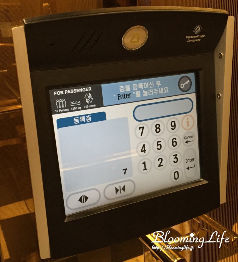 エレベーターは、宿泊している部屋の番号を押すようになってました。