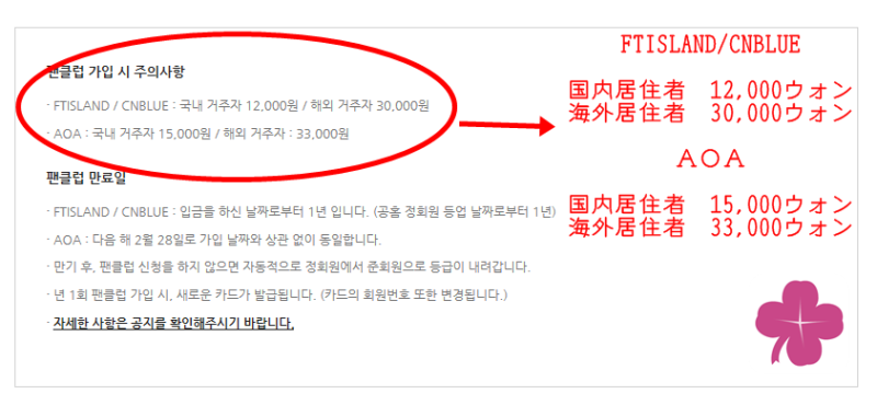 2016年6月28日時点で、FTISLANDとCNBLUEの年会費は下記のとおり。