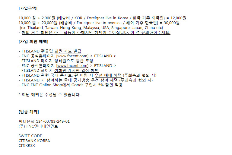 FNCエンターティンメント韓国ファンクラブの年会費