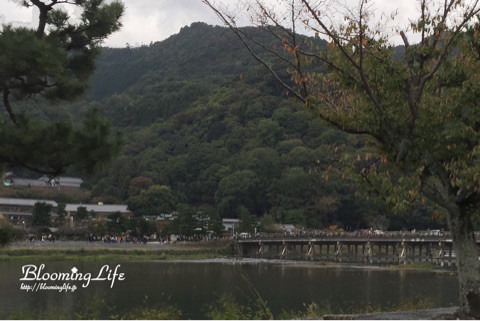 右に見える橋が渡月橋です。