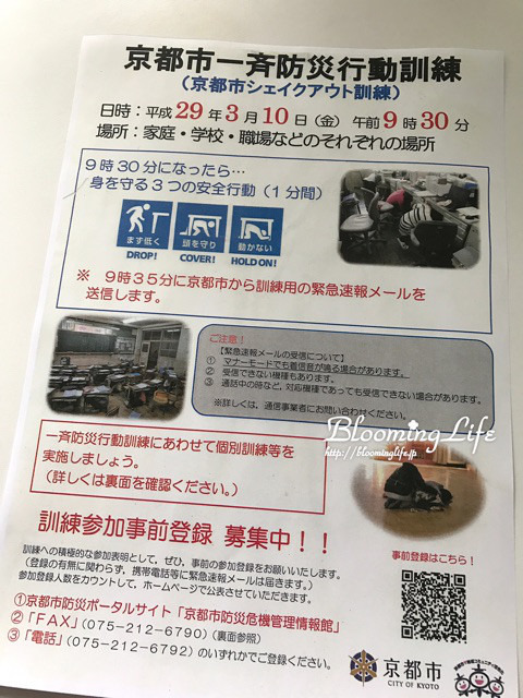 明日、3月10日午前9時30分より、京都市で一斉防災行動訓練があります。