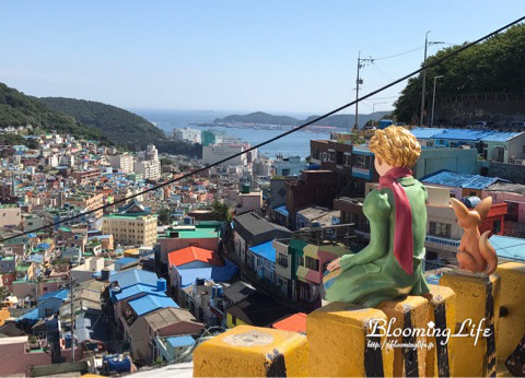 甘川文化村で一番人気なのが、「星の王子様と砂漠のきつね」像の間に座って