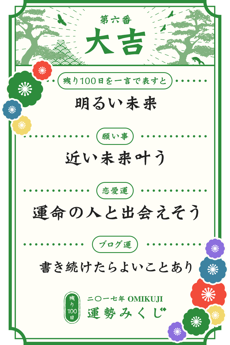 アメブロさんで残り100日の運勢というのがはじまったというので