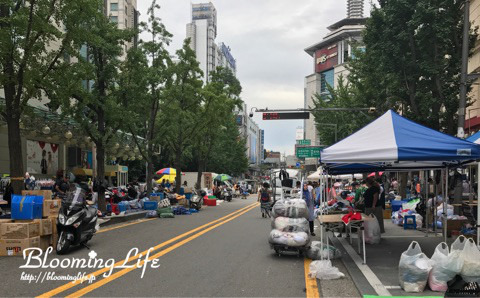 ビルとビルの間や、通りの両側にフリマ状態で屋台が出ていました。