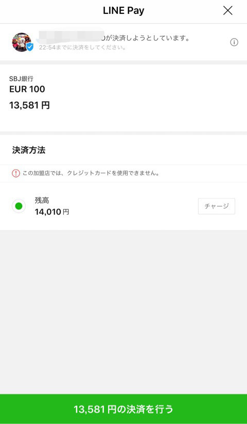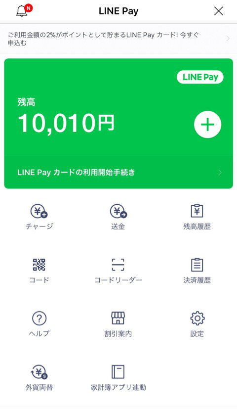 LINE Payを使うのが初めてだったので、最初にチャージ元口座を設定して、