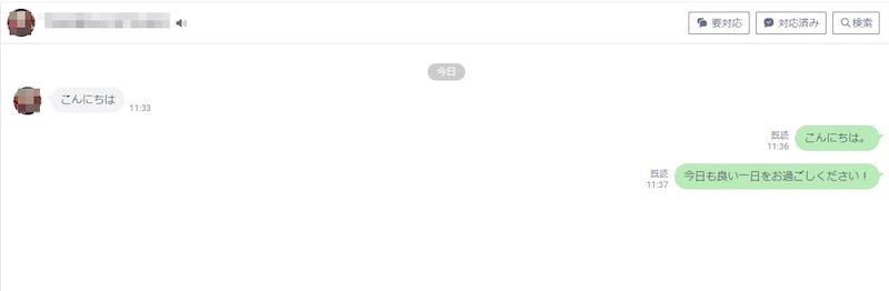 公式アカウントの管理画面ではLINE@の時の 「1:1トーク」と同じように、 こんな感じでチャットをしていきます。